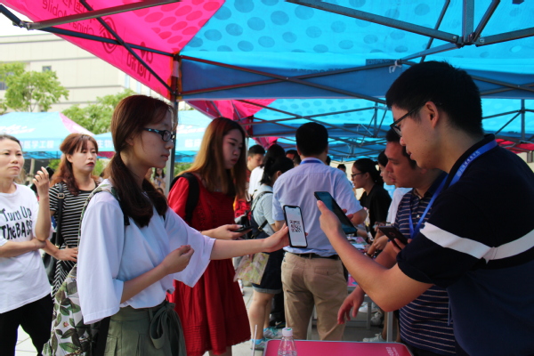 微信作为一个广受大家喜爱的手机交流平台,用户群体众多,使用方便、快捷,信息管理中心为了适应广大师生用户的使用习惯,提供更多个性化、精准化服务,充分利用微信公众平台强大的互动模式,经过暑期紧张的准备,依托智慧校园建设平台,借助微信企业号服务平台,启用了微信企业号上面的“移动迎新”应用,推进了智慧化服务模式,为新生及教职工提供了高效便捷的用户体验。在8月26日、9月8日两次迎新报到的现场新生或刷脸或扫码报到,新生只需要给工作人员出示报到二维码,扫一扫就可以完成报到,秒级便捷,服务人性化。